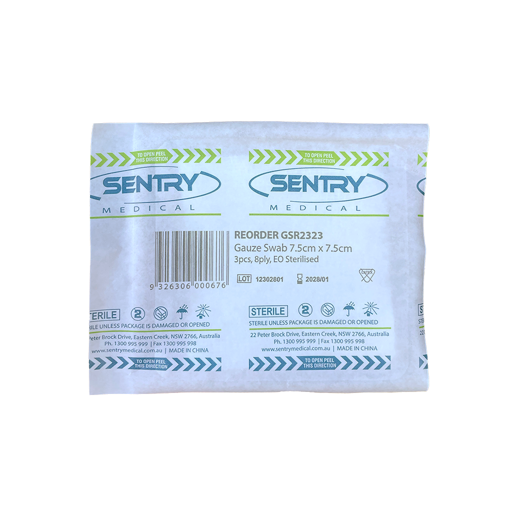 SENTRY GAUZE SWABS STERILE 8 PLY 7.5CM X 7.5CM (PACKET 3)Available: In Stock$35.20
